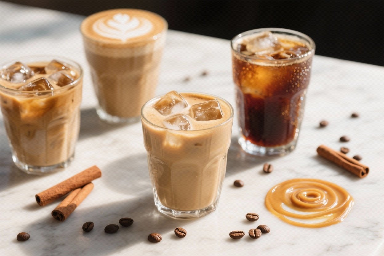 Want these drinks in five minutes flat? Keep coffee concentrate or cold brew in the fridge, stash simple syrup on hand, and pre-measure spices. An inexpensive handheld frother turns everyday milk into café-style foam in seconds.